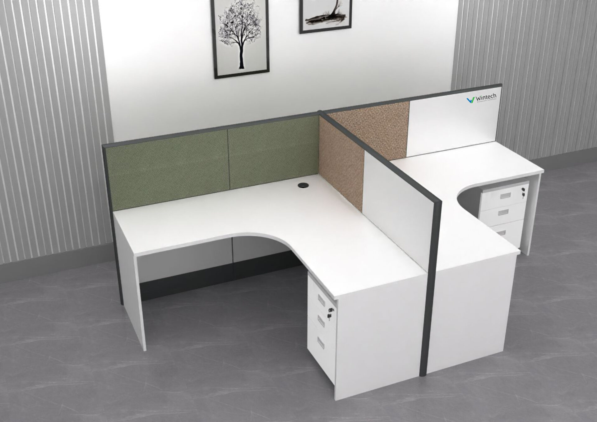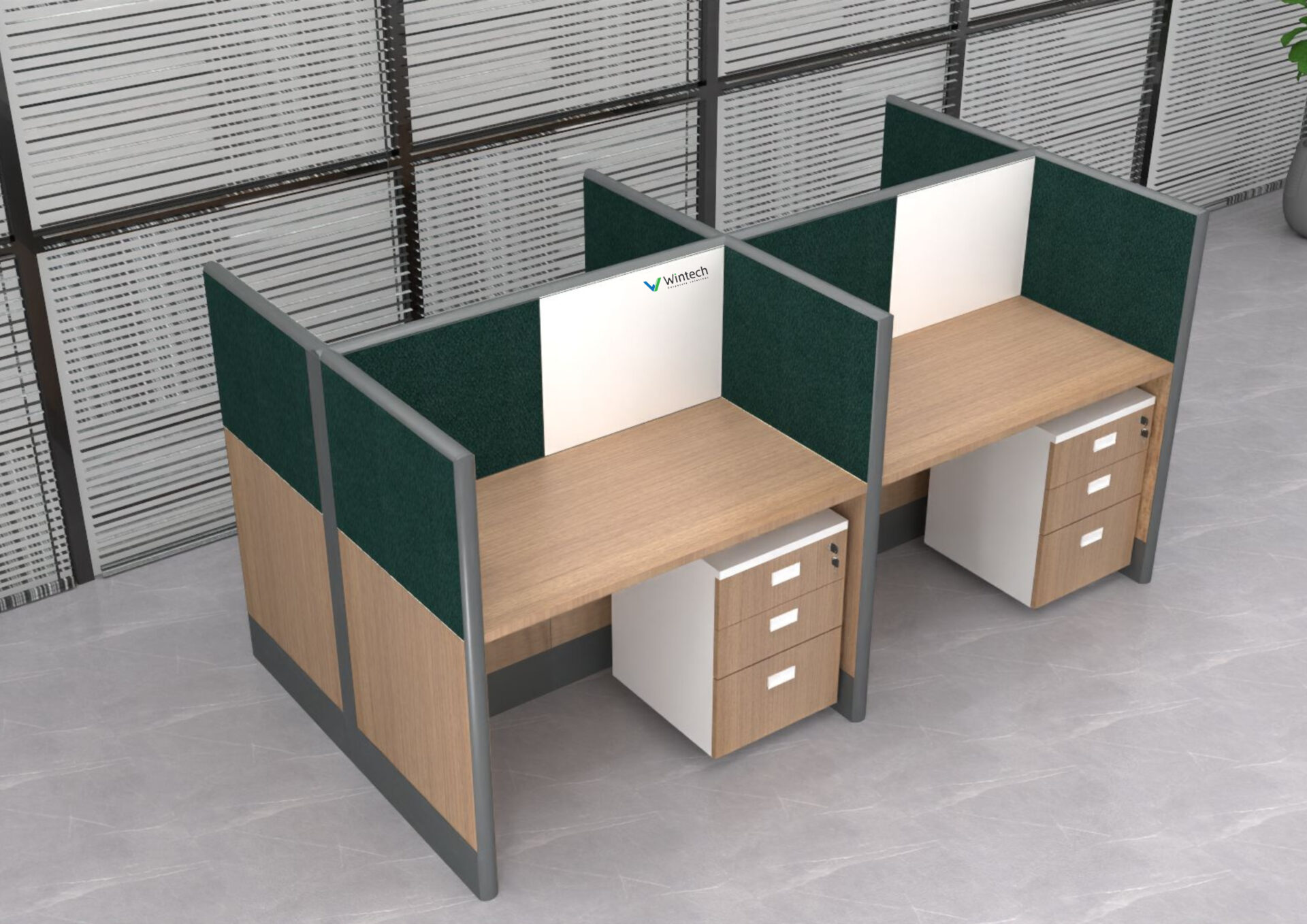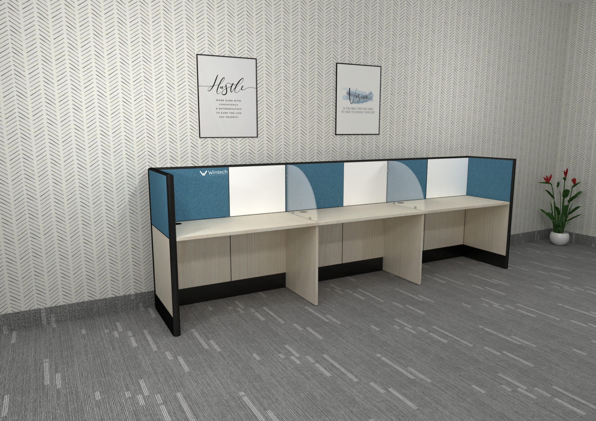 With 8mm plain glass dividers and premium MDF or fabric tile panels, the Glassy variant feels open, bright, and ultra-modern. It’s perfect for upscale corporate environments that seek clarity without sacrificing structure.