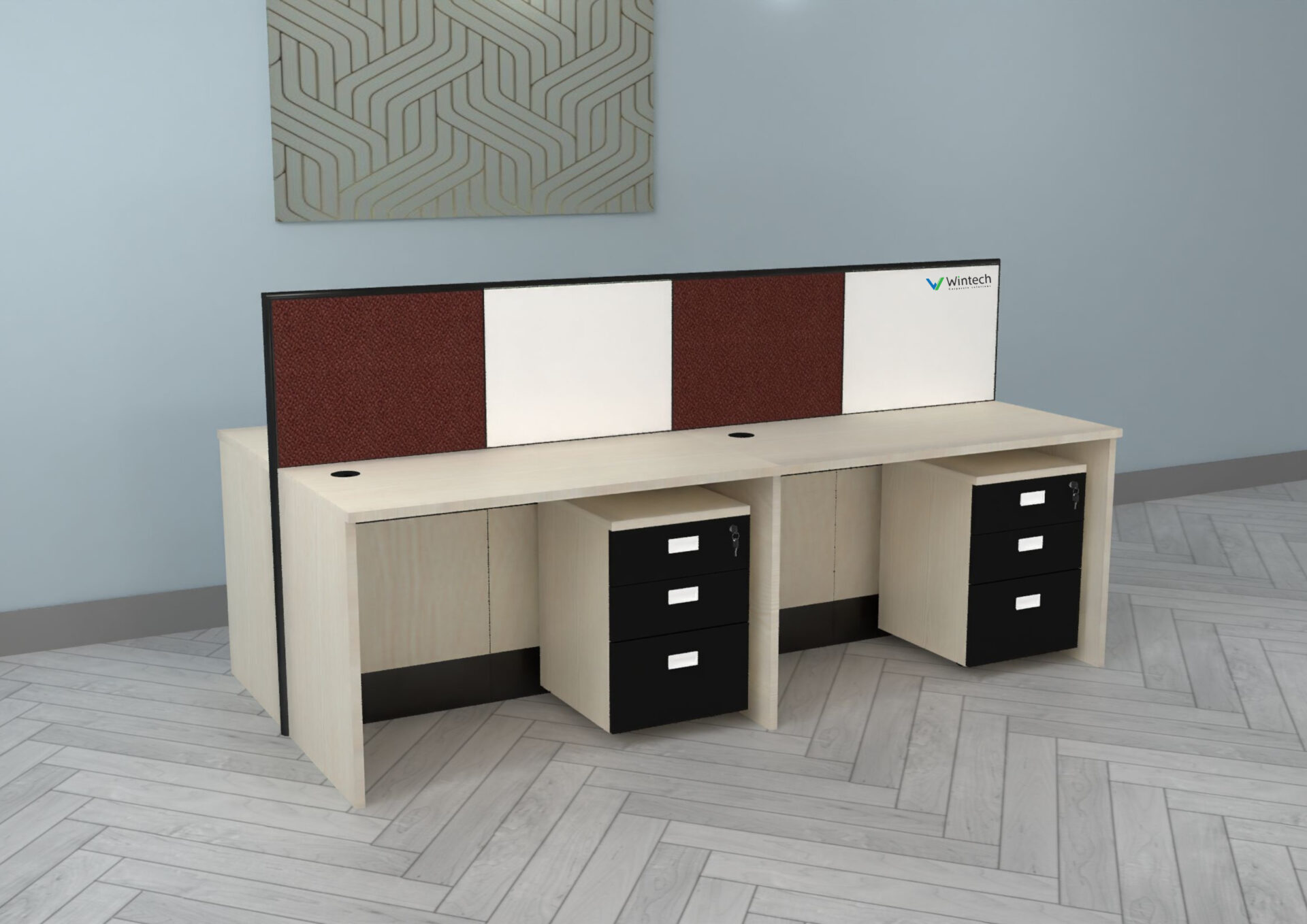 Crafted from scratch-resistant MS CRCA 75/50mm frames, this series is anchored in strength and longevity. The surfaces feature 25mm PLPB boards that are flake and termite-proof, offering resistance to daily wear while reflecting a premium tactile finish. Thoughtful features like easy knock-down units, integrated electrical/data slots, and optional Pinup/Writing Boards ensure that this isn’t just a visually beautiful series—it’s built to perform.
